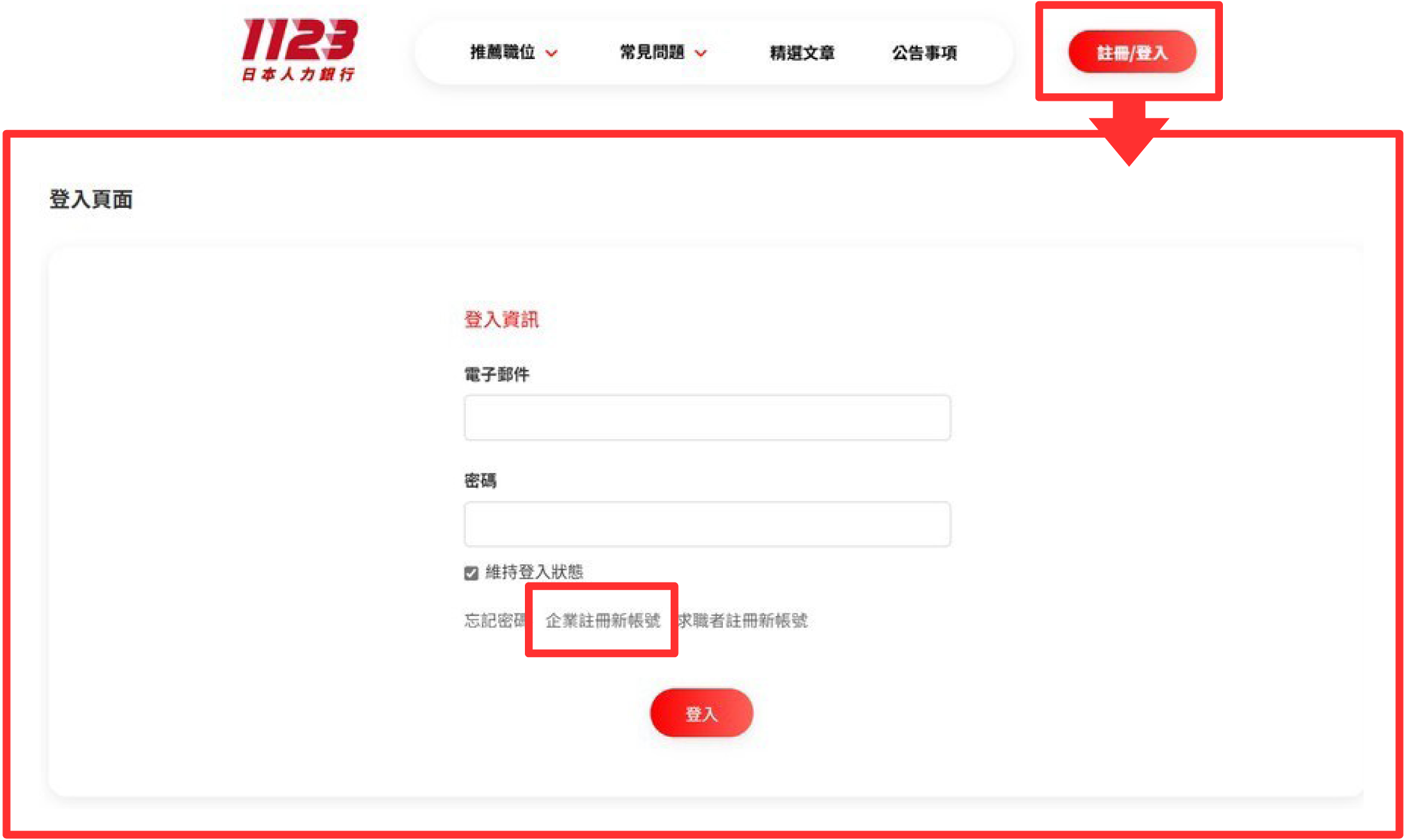 •【註冊 / 登入】をクリックしてログインページへ進む