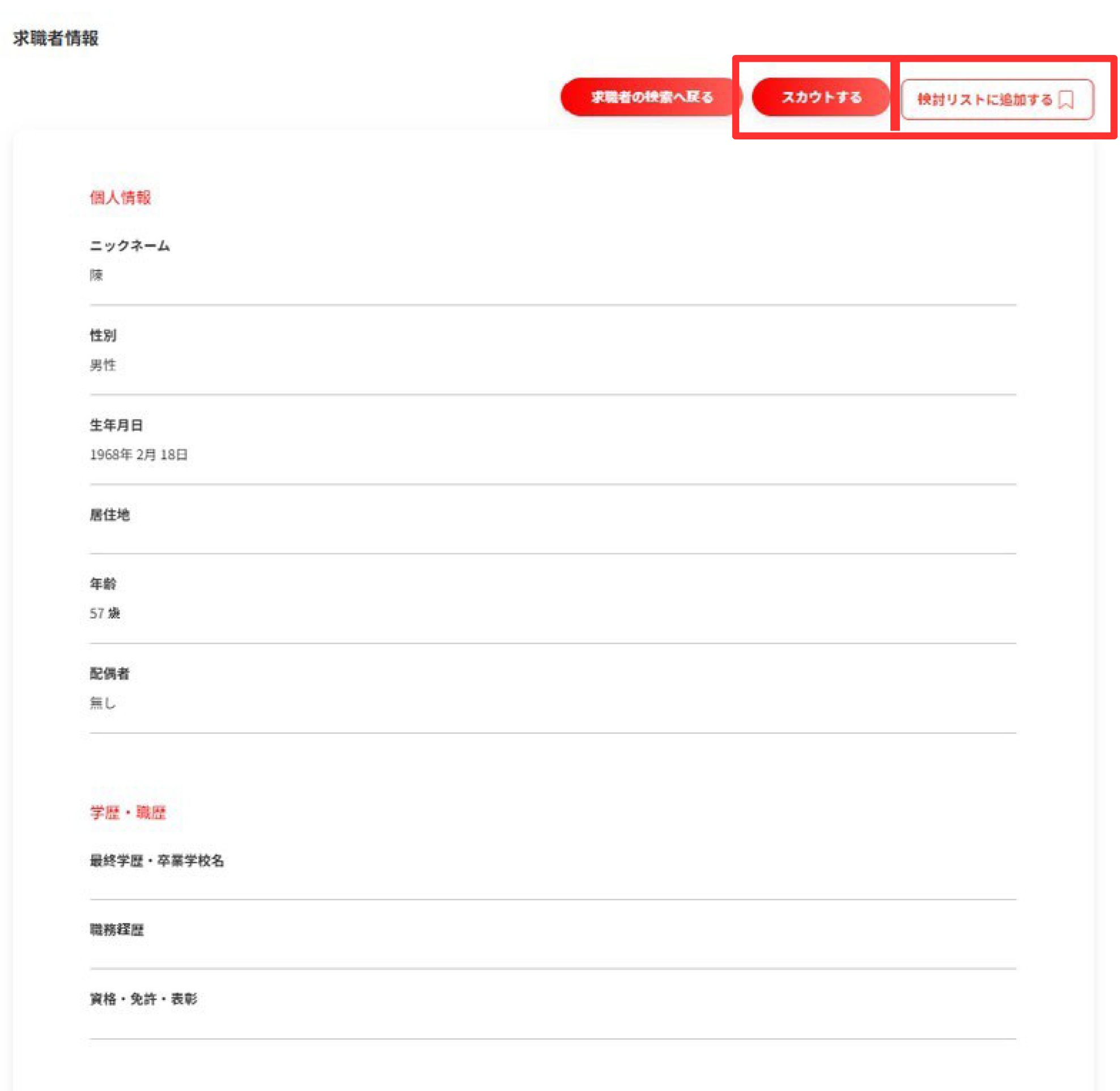 •求職者を検討リストに追加するか、連絡を取ることができます