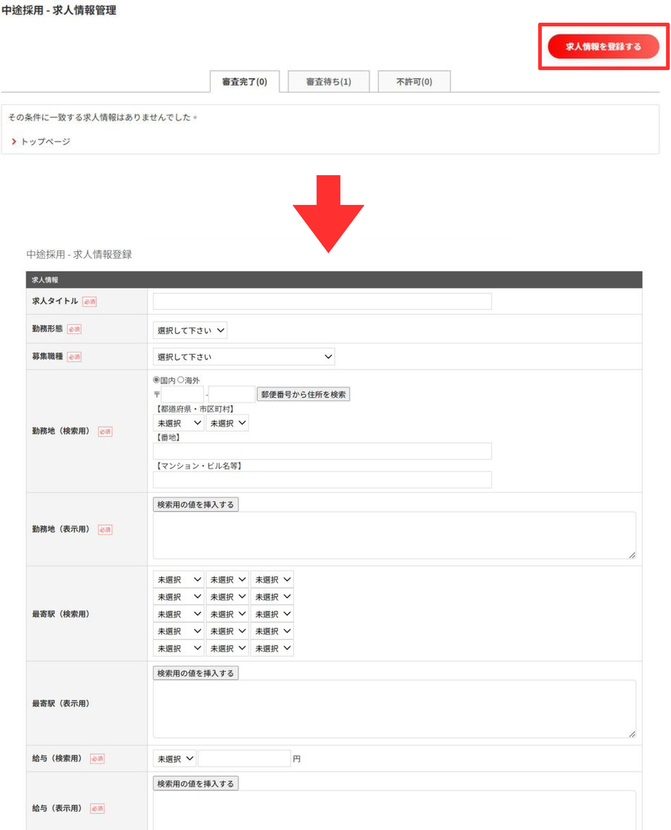 •右上のボタンをクリック、 新しい求人情報を登録します