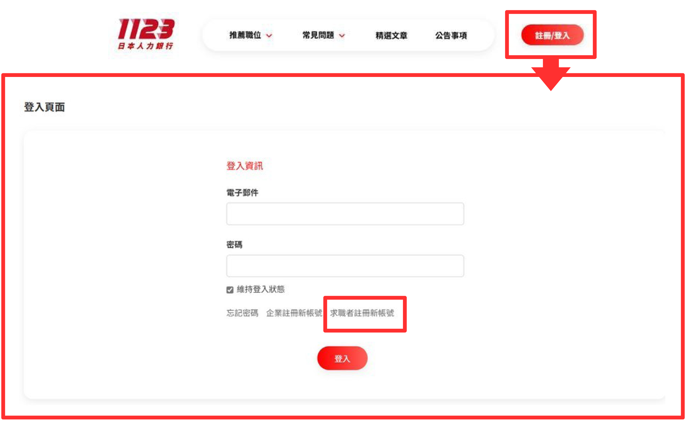 •選擇「求職者註冊新帳號」