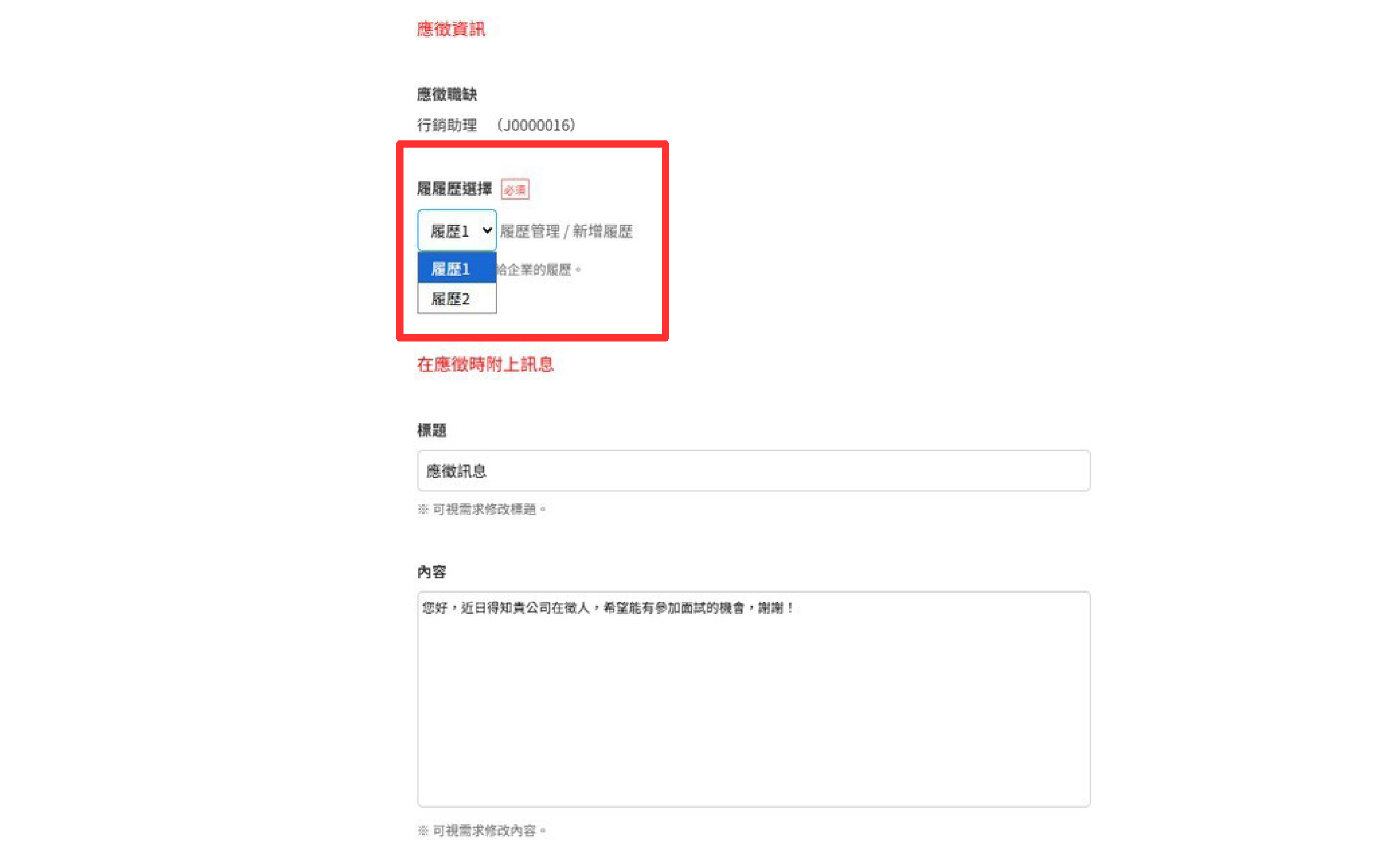 •應徵時可選擇要投遞哪份履歷