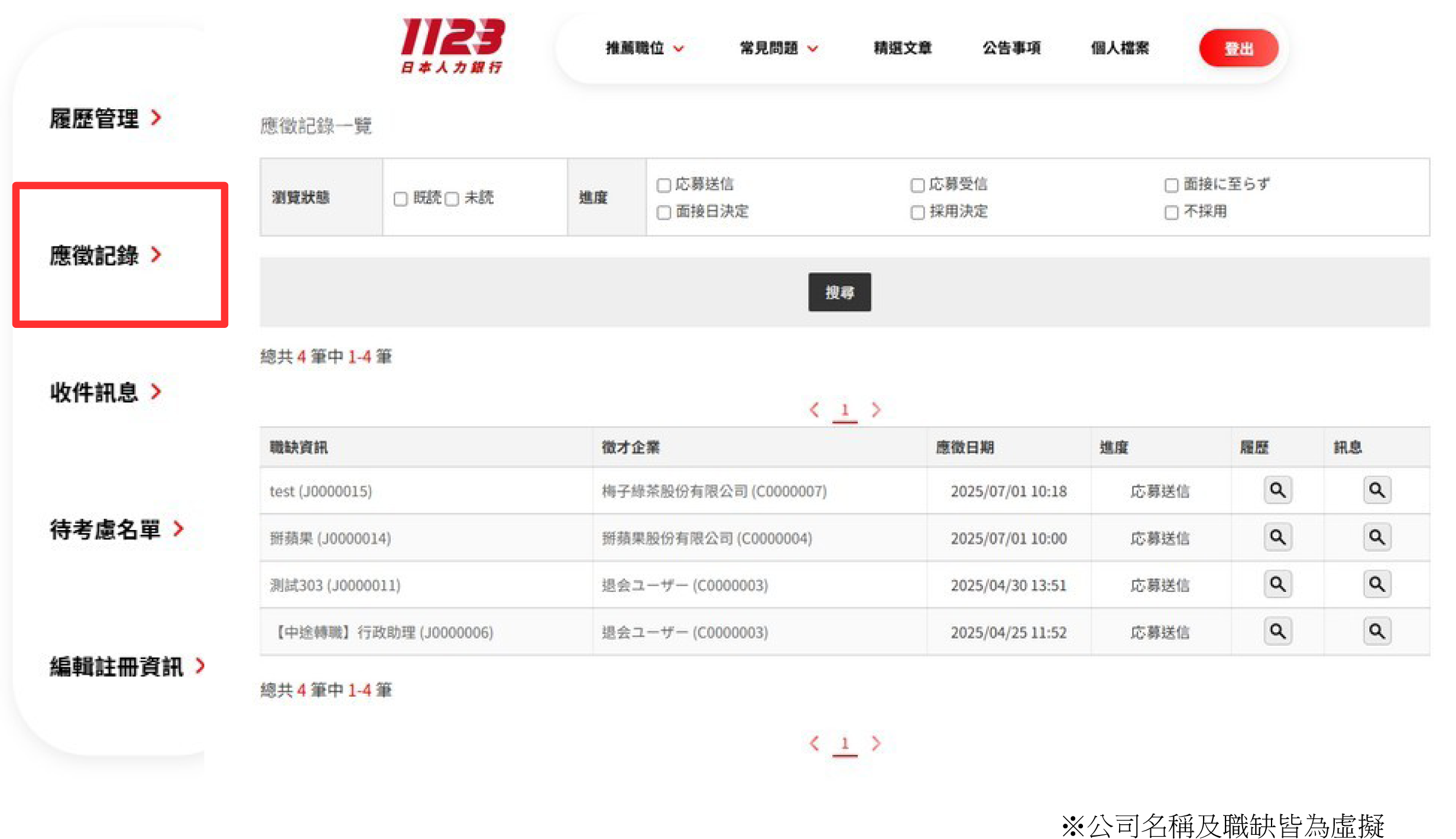 •可在【應徵紀錄】看到目前的應徵情況