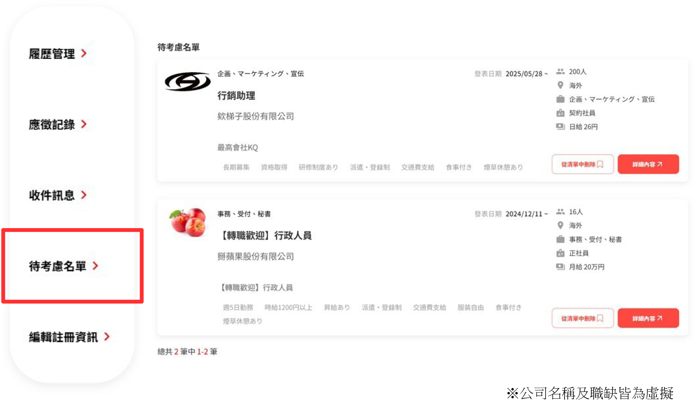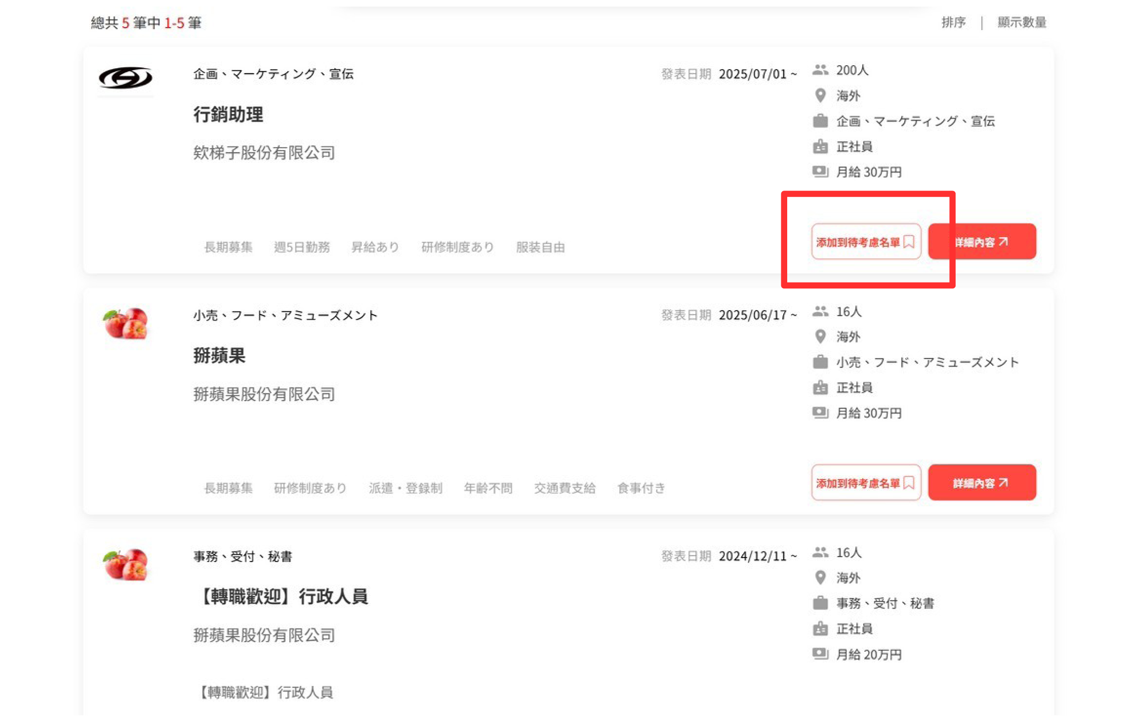 •可在【待考慮名單】看到收藏的所有職缺