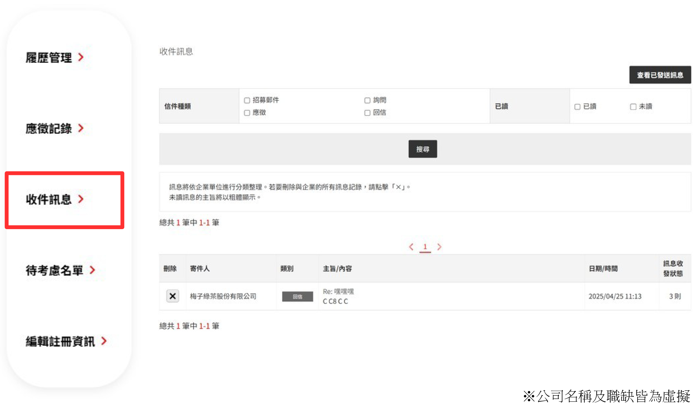 •可在【收件訊息】看到與企業方傳送的訊息