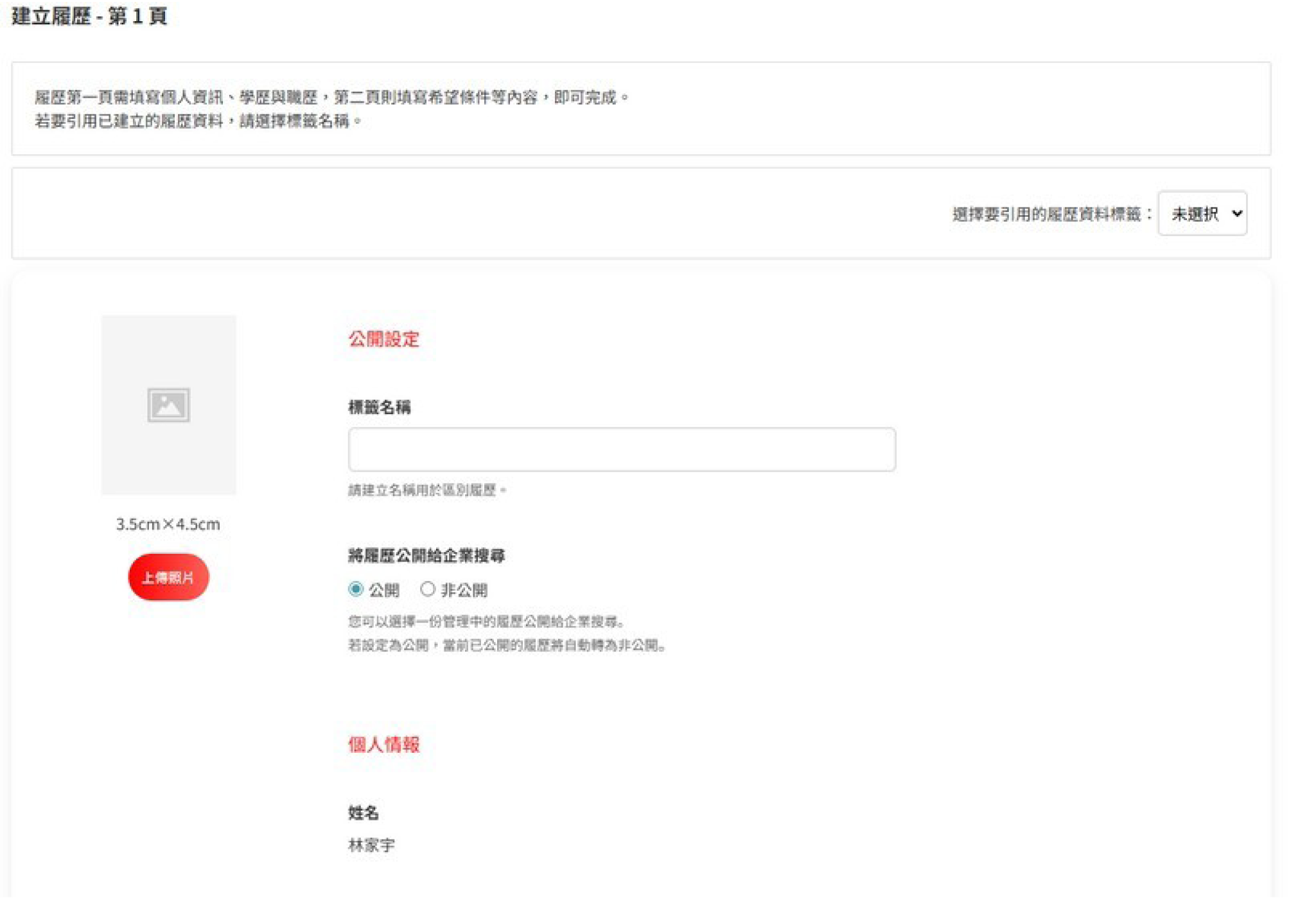 •註冊完畢,即可開始編輯履歷